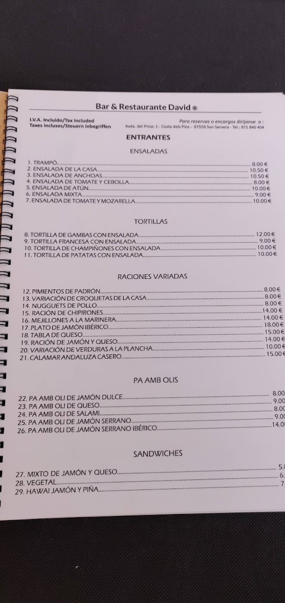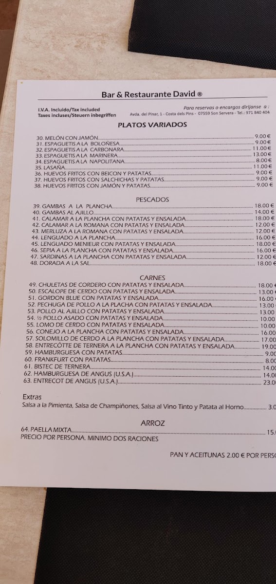 Introducing the menu at Restaurante David, an authentic Andalusian treasure in Costa dels Pins, Spain. Here, culinary excellence meets warm hospitality, making every dining experience memorable. The highlight of the menu lies in its fresh, locally-sourced ingredients that shine through in every dish.